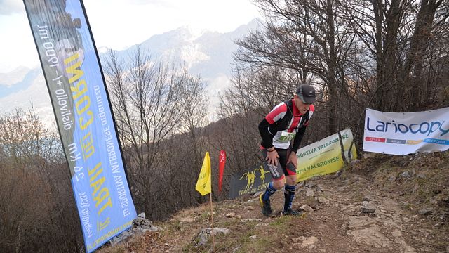 Poche decine di metri in piano e ci infiliamo già nel bosco del versante orientale della valle. Le buone sensazioni le abbandono però malauguratamente e (ancora per poco) inconsapevolmente lì ai bordi del sentiero e salgo senza… Gambe improvvisamente molli, dolori alle spalle, fiato corto e fiacchezza generale. Incrocio il Falco (di lecco) Gabriele Alippi che scende contromano, scortando un compagno di squadra vistosamente zoppicante. Immagino per una scavigliata ma forse qualcosa di peggio. Mi supera intanto uno dei colleghi che avevo raggiunto e superato nella precedente planata: “Tanto poi mi riprendi alla prossima discesa”. Eh, mi sa di no! Ad ogni passo diventa più dura: che il sentiero impenni o che davanti ci sia un (peraltro raro) falsopiano, è come se tra gli ingranaggi non scorresse più una goccia d’olio. Inizia a ronzarmi per la testa l'ipotesi-ritiro: la scaccio pensando che è fin troppo presto per mollare e che può sempre trattarsi di una crisi passeggera. Proviamo a tenere duro e vediamo se mi lascia veloce come è arrivata.
