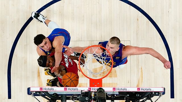 La prima sfida delle Nba Finals va ai Denver Nuggets, che non lasciano scampo a una Miami troppo brutta per essere vera ed ancora provata dalle fatiche di gara-7 contro i Celtics. L'altitudine a 1.600m sembra fare il resto, tagliando il fiato agli Heat, mai davvero in gara fino all'ultimo quarto, che consente loro di accorciare lo svantaggio fino al 104-93 finale. L'avvio di Denver è autoritario, con Jokic a pennellare per i compagni e Murray a sfruttare i suoi assist: il vantaggio nel primo quarto si dilata fino al +17 di metà partita, con un massimo margine di +24 nel terzo quarto. L