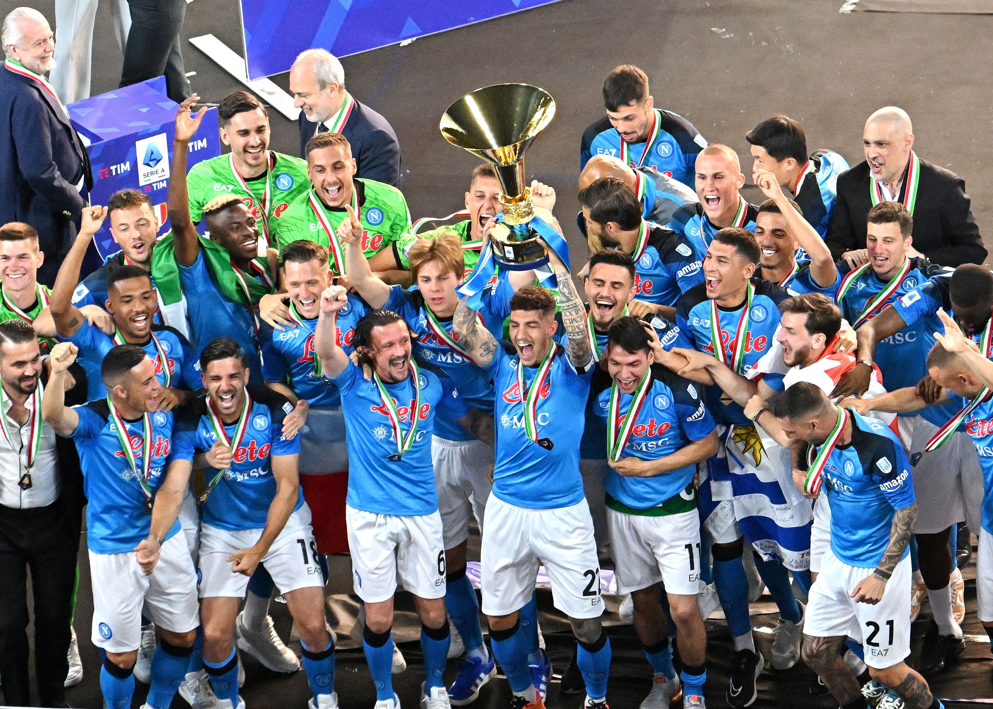 Dopo la vittoria contro la Sampdoria, al Maradona è iniziata la festa scudetto. Uno show straordinario con tanto di premiazione e spettacolo in grande stile. Prima però hanno preso la parola alcuni dei principali protagonisti della cavalcata azzurra. Da Osimhen al presidente De Laurentiis passando per Kvaratskhelia.
