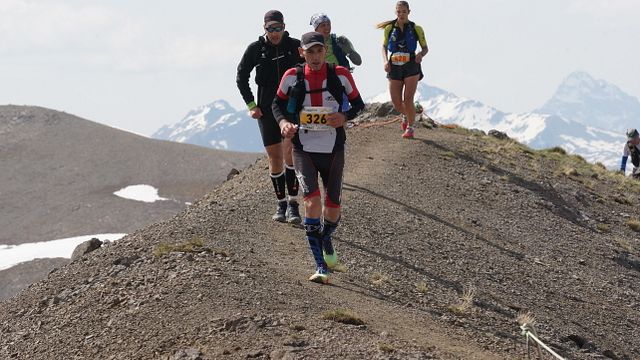 Ci stiamo dentro (nel cancello) piuttosto agevolmente. Solo che al Baitel inizia il secondo vertical di giornata: quello che porta in buona sostanza a guadagnare quota tremila, zona della sofferenza nella quale trascorreremo un’oretta buona tra rocce, creste, nevai, altri tratti sapientemente preparati dallo staff organizzatore. Lungo il traverso che conduce al Pizzo Cassana (GPM della Skymarathon con i suoi 3070 metri, splendida vista sulla conca innevata sottostante e sui colleghi della SkyTrail da 17 chilometri che "incrociano" laggiù), individuo nel collega Paolo Taglietti il “gancio” giusto per provare a soffrire un po’ di meno. Si tratta di pura illusione ovviamente…