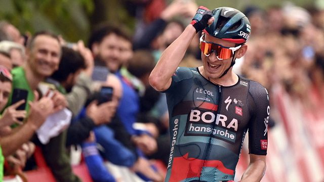 Da lì partiva la vera fuga di giornata, composta da otto corridori: Kämna (Bora), Dani Navarro (Burgos), Barrenetxea (Caja Rural), Fernandez (Cofidis), Hamilton (Dsm), Caicedo (Ef), Sobrero (Jayco-AlUla) e Ghebreigzabhier (Lidl-Trek). Questo gruppetto guadagna quasi sette minuti e il gruppo lascia fare, accelerando solo quando si crea un breve ventaglio con una trentina di corridori all'attacco: tra loro Evenepoel e tutti i big della generale, escluso Lenny Martinez che rientra dopo aver perso un minuto. Intanto davanti si lotta per la tappa e la giuria, viste le immagini che arrivano dagli ultimi 150m, decide di neutralizzare i tempi ai -2km, dando vita a uno scenario surreale. Davanti si lotta per la tappa, con Kämna a staccare Sobrero (arrivato a 13") e conquistare la vittoria con una grande azione, entrando nel gruppo di chi ha vinto una tappa al Giro, al Tour e alla Vuelta. Dietro invece Primoz Roglic risponde all'attacco di Almeida (Uae) e Vlasov (Bora), arrivati a 3'11" dal vincitore, chiudendo a 3'16" e guadagnando due secondi su Evenepoel, Mas, Ayuso e Vingegaard (3'18"). Si stacca Kuss, che chiude a 3'25" e mantiene la maglia rossa, mostrando i primi segni di cedimento. Il gruppo si prende i fischi del pubblico, fermandosi letteralmente dopo i -2km e procedendo a passo d'uomo fino all'arrivo, vista la neutralizzazione.