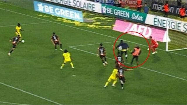 Dalle immagini, la dinamica è più che chiara: azione dalla sinistra e palla in mezzo, sulla traiettoria c'è però proprio il tifoso braccato da due addetti alla sicurezza, che lo bloccano e lo accompagnano all'esterno del campo da gioco scatenando l'ira del tecnico del Nantes Aristouy, particolarmente arrabbiato per quanto accaduto.