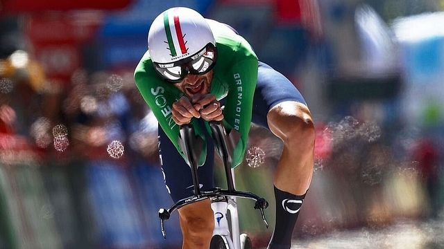 Straordinario Filippo Ganna nella cronometro di 25.8 km di Valladolid, valida per la decima tappa della Vuelta 2023 e caratterizzata da un percorso prevalentemente pianeggiante, a eccezione di una leggera salita nella parte iniziale. L’italiano della Ineos Grenadiers chiude con un tempo spettacolare: 27’39’’. Una prova magistrale di Pippo, con 56 km/h di velocità media. Al secondo posto si piazza Remco Evenepoel della Soudal-QuickStep, con Ganna che dunque ribalta il risultato della crono del Mondiale di Glasgow. Il belga transita in 27’55’’, aumentando il suo divario sugli avversari in classifica. Terza posizione per Primoz Roglic della Jumbo-Visma: lo sloveno, che transita in 28’15’’, paga 20’’ da Evenepoel. Non bene il suo compagno di squadra e vincitore del Tour de France Jonas Vingegaard, attardato di oltre 1’ rispetto ai primi due al traguardo. Resta in maglia rossa il terzo corridore di punta della Jumbo-Visma, ovvero Sepp Kuss: lo statunitense è ancora leader con 26’’ di vantaggio su Marc Soler della Uae Emirates. Rosicchia oltre un minuto Evenepoel, terzo a 1’09’’, così come Roglic, quarto a 1’36’’. Paga invece Vingegaard, che rimane a 2’22’’ dal suo compagno di squadra a stelle e strisce.
