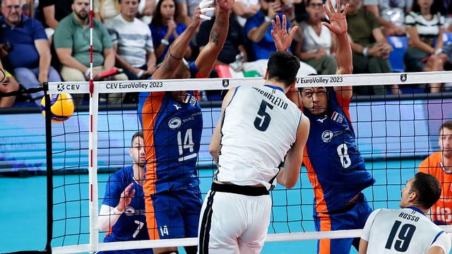 Dopo l’agevole vittoria contro la Macedonia del Nord, oggi è tempo per gli azzurri di affrontare l’Olanda nei quarti di finale degli Europei di volley maschile 2023 per poter raggiungere le Final Four e cercare di difendere il titolo continentale. L’obiettivo viene raggiunto grazie alla vittoria al quinto set, con il punteggio finale di 19-25, 25-17, 25-16, 23-25, 15-12. Il turning point del primo set è ravvisabile al momento dell’infortunio di Russo, che atterra male sulla caviglia sul 14-12 per gli italiani. Entra Sanguinetti al suo posto, ma gli olandesi riescono a rimontare e prendere il sopravvento tecnico e psicologico per il 25-19 che chiude il primo periodo (9 punti di Abdul-Azziz). Alla ripresa del gioco la squadra di De Giorgi torna in partita e alza nuovamente il livello, crescendo rapidamente nel 25-17 che sancisce il pareggio (gran parziale di Romanò).