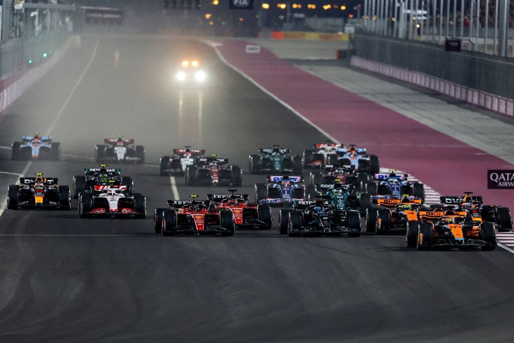Max Verstappen campione del mondo per la terza volta al termine della Sprint Race di Losail vinta da Oscar Piastri (che era partito dalla pole) davanti allo stesso olandese e all'altra McLaren di Lando Norris, autore di una bella rimonta nel finale. La certezza del terzo e storico titolo arriva poco oltre metà distanza con l'uscita di scena del suo compagno di squadra Sergio Perez, incolpevole vittima del duello tra Esteban Ocon e Nico Hulkenberg. Quarto e quinto posto per le Mercedes di George Russell e Lewis Hamilton, Ferrari sesta e settima al traguardo con Carlos Sainz davanti a Charles Leclerc dopo un avvio di gara molto promettente ma un finale in ribasso. A fine gara il monegasco viene penalizzato di cinque secondi per aver oltrepassato in quattro occasioni i famigerati track limits, uscendo così dalla zona punti e dalla top ten (tredicesimo).