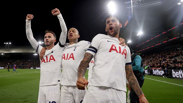 Prosegue inesorabile la marcia del Tottenham che, nonostante qualche patema d'animo nel finale, sconfigge 2-1 il Crystal Palace ed effettua un temporaneo allungo in vetta alla Premier League. Avvio equilibrato in questo derby londinese, col Palace subito efficace dalle parti di Vicario. L'ex portiere dell'Empoli salva su Ayew ed Edouard, poi si svegliano gli Spurs con la chance per Maddison. Nè l'ex Leicester, nè Richarlison trovano la porta in un primo tempo che vede il Tottenham superare il 70% di possesso palla e rischiare in contropiede, con Andersen vicino alla rete nel finale. Lo 0-0 resiste anche al tentativo di Edouard in avvio di ripresa, poi ecco la rete: sono gli Spurs a sbloccare la sfida con la sfortunata autorete di Ward (53'), che devia in porta il tiro-cross forte e teso di Maddison. Dopo la rete Postecoglou inserisce Hojbjerg per gestire i ritmi e Brennan Johnson per le ripartenze, e il secondo è decisivo: l'ex Nottingham serve infatti l'assist per Son Heung-min, che finalizza la ripartenza del Tottenham e firma il 2-0 al 66'. Il finale è concitato, con Ayew a firmare il 2-1 al 94': sembra esserci un tocco col braccio, ma il Var convalida tra le proteste e nel maxi-recupero Matheus França sfiora il clamoroso pareggio al 102'. Vince comunque 2-1 il Tottenham, che vola a 26 punti e a +5 su Manchester City e Arsenal, che devono ancora giocare e potranno rispondere. Leadership e imbattibilità mantenute per Postecoglou, che continua a sognare coi suoi Spurs, mentre il Crystal Palace si ferma a dodici punti.