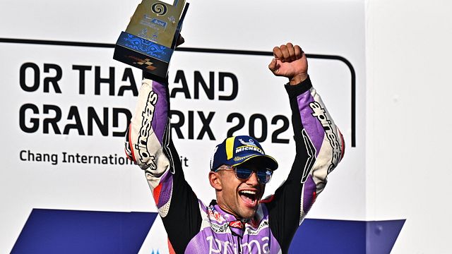 Jorge Martin è raggiante dopo il trionfo nel GP di Thailandia, che gli ha permesso di completare la sua quarta doppietta stagionale in MotoGP e accorciare su Bagnaia in vetta: "Tutti e tre eravamo uguali come passo, è stata una guerra ad armi pari - le parole del pilota Ducati Pramac a Sky -. Avevamo le stesse possibilità di vincere, ma io essendo partito davanti a tutti ho gestito un po' meglio la gomma per l'ultimo giro. Ho trovato il punto giusto in cui frenare e per far andare lungo chi mi inseguiva. Abbiamo fatto una piccolissima modifica che però mi ha permesso di staccare come volevo. Il sorpasso su Brad? Mi stava andando via, ma quando ho visto che si muoveva un po' la sua moto ho deciso di attaccarlo in Curva 3. Questo sorpasso mi ha dato la carica per resistere fino in fondo".
