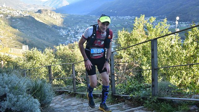 La prima missione è quella di raggiungere senza troppi danni il passaggio-chiave di Teglio, dove la valle scavata dal fiume Adda e prima ancora dal suo ghiacciaio svolta decisamente: dall’andamento nordest-sudovest a quello est-ovest, all’inseguimento del tramonto. Tra vigneti da attraversare diligentemente, assecondando le linee precise dei filari, e le rampette che portano da un livello a quello superiore (o anche inferiore) non ci allontaniamo mai troppo rispetto al fondovalle principale ma il menu è già lì sotto le suole delle mie affidabilissime ASICS GEL-Trabuco 11, alla ultima prova della loro carriera (sei o sette gare trail e sky piuttosto impegnative, le loro eredi sono già pronte ai box), oltre che dentro i polmoni. Ed è un menu piuttosto indigesto: gara largamente e lungamente corribile, spezzata però da rampe molto secche: terra, cemento, prato, asfalto nel passaggio dei centri abitati che regolarmente tocchiamo. Mi sa che è una giornata storta: le salite mi sembrano… più salite che in passato. Sono alla terza “Wine” 42K ma è la prima da quattro anni a questa parte. L’anno scorso e due anni fa - al rientro da altrettanti infortuni estivi - mi ero dovuto limitare alla 21K al via da Chiuro. Avevo troppa voglia di rimettermi alla prova sulla “lunga” ma forse la preparazione non è adeguata o forse qui si corre troppo rispetto alle mie amate “sky”! Fatto sta che al traguardo di Sondrio rimarrò un’ora abbondante sopra al mio PB (si fa per dire…) del 2019. Quindi… sì: giornata… no!