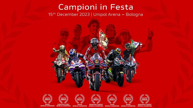La festa Ducati avrà luogo venerdì 15 dicembre presso la Unipol Arena di Casalecchio di Reno (in provincia di Bologna) e sarà a ingresso gratuito. L’occasione consentirà a tutti i partecipanti di condividere la gioia di un 2023 da sogno celebrando insieme alla squadra di Borgo Panigale che, con impegno e passione, ha reso possibile questi risultati.