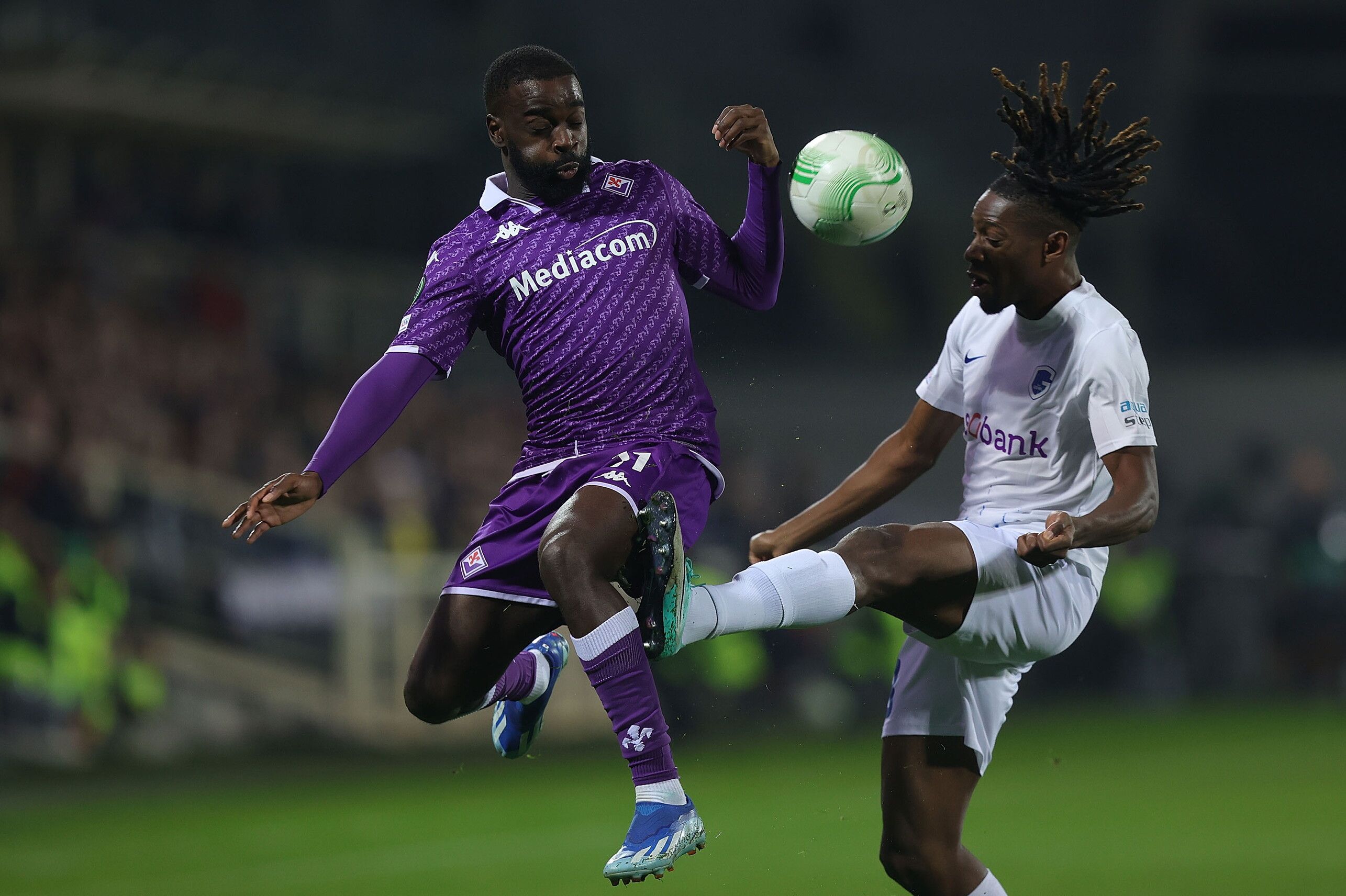 Grande spavento per la Fiorentina in avvio, che al 5’ viene salvata dal palo: Fadera viene servito in profondità e davanti a Christensen angola troppo il destro, trovando il legno. Ancora la formazione ospite sfiora il vantaggio con Paintsil, che non riesce però a superare il portiere danese. La partita richiede grande intensità ad entrambe le formazioni, con Barak e Nico Gonzalez che cercano una soluzione vincente senza però impensierire l'estremo difensore avversario. Fadera, già ammonito (e poi sostituito), commette due falli scomposti tra il 35’ e il 36’ su Parisi ma viene graziato dall'arbitro. Cinque minuti dopo un altro episodio dubbio: crossa Kouamé, interviene Van Crombrugge ma la palla resta in area piccola ed Ikoné si avventa sul pallone anticipando Munoz, che calcia la gamba dell’ex Lille, ma per Kooij non c'è nulla. Al 43’ arriva la beffa: Baah (appena entrato) scappa sulla fascia e passa in area per Kayembe, che elude l'intervento dei difensori viola e realizza con un tocco sotto. La Viola risponde immediatamente: prima Barak conclude magistralmente ma trova una grande risposta del portiere ospite, che sull'angolo successivo para ancora su Mina ma non sul tap in di Martinez Quarta, che chiude il primo tempo sull’1-1. La ripresa si apre con un’altra chance da corner della Fiorentina, con il ceco che colpisce bene di testa ma si vede ancora negare la rete da un grande intervento dell’estremo difensore. Al 68' è Biraghi ad impegnare ancora Van Combrugge con una punizione dal limite ben calciata. L’episodio che decide la partita arriva però al minuto 82, quando Kayode si procura un calcio di rigore (fallo di Sadick) al termine di una bellissima azione corale: Nico non sbaglia, spiazzando il portiere. Nel finale si registra tanto nervosismo (ammonito anche Biraghi, già diffidato) ma il risultato non cambia: finisce 2-1 ed è soltanto la rete di Pesic al 98’ in Cuckaricki-Ferencvaros 1-2 ad impedire alla Fiorentina di qualificarsi direttamente agli ottavi di finale (attualmente c'è la certezza soltanto dell'accesso alle fasi ad eliminazione diretta). Sarà quindi necessario un risultato positivo a Budapest all’ultima giornata per permettere ad Italiano e i suoi di saltare un turno eliminatorio grazie al primo posto (attualmente i viola sono a 11 punti mentre gli ungheresi a nove).