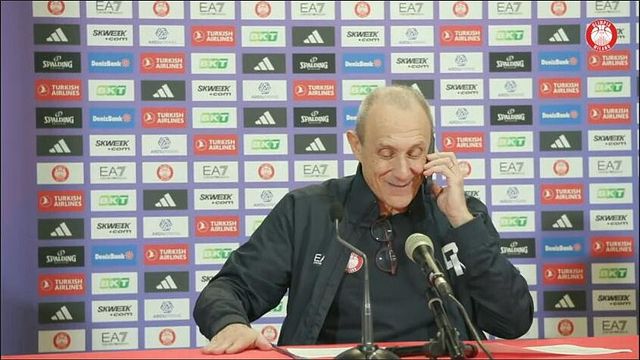 L'allenatore dell'EA7 si siede in sala conferenze e come di consueto inizia ad analizzare la partita in inglese. Ma passano pochi secondi e viene interrotto dal suono del suo cellulare. Dall'altra parte c'è Pantaleo (per tutti Leo) Dell'Orco, il presidente dell'Olimpia Milano e braccio destro di Giorgio Armani. Ecco il video di quanto accaduto.