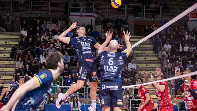La 13a giornata della Superlega, la seconda del girone di ritorno, sorride all'Itas Trentino. Troppo divario con la Gioiella Prisma Taranto, che cade per 3-0 davanti a un palazzetto gremito (25-23, 25-20, 25-20). Ljubomir Travica e i suoi subiscono subito un parziale di 6-3 e vengono ricacciati costantemente indietro da Trento, che vola sul +5 (20-25) e viene riavvicinata solo nel finale, prima del 25-23 di Podrascanin. Nel secondo set Taranto vola subito sul +3, ma Lavia si ritrova e consente all'Itas di chiudere 25-20 e portarsi in vantaggio bdi due parziali. Nel terzo set è tutto facile per Trento, che spezza l'equilibrio e chiude col medesimo punteggio: 3-0 alla Prisma Gioiella e ritorno in vetta con 34 punti. Lorenzetti schiera il suo sestetto base: Giannelli in regia, Herrera opposto, Flavio e Solè centrali, Semeniuk e Plotnytskyi schiacciatori e Colaci libero. La mossa si rivela vincente, perché la Sir si porta subito sul +5 e Monza non riesce a riavvicinarsi, fino al 25-21 stabilito da Solé. La musica si ripete negli altri due parziali, con Monza che ha una reazione solo nel terzo set, dove si porta sul 14-12 prima della rimonta vincente degli umbri. Esulta la Sir, con Plotnytksyi (16) top-scorer davanti a Semeniuk (14) e un altro vincente di Solé, che risulta decisivo pur chiudendo con soli sette punti.
