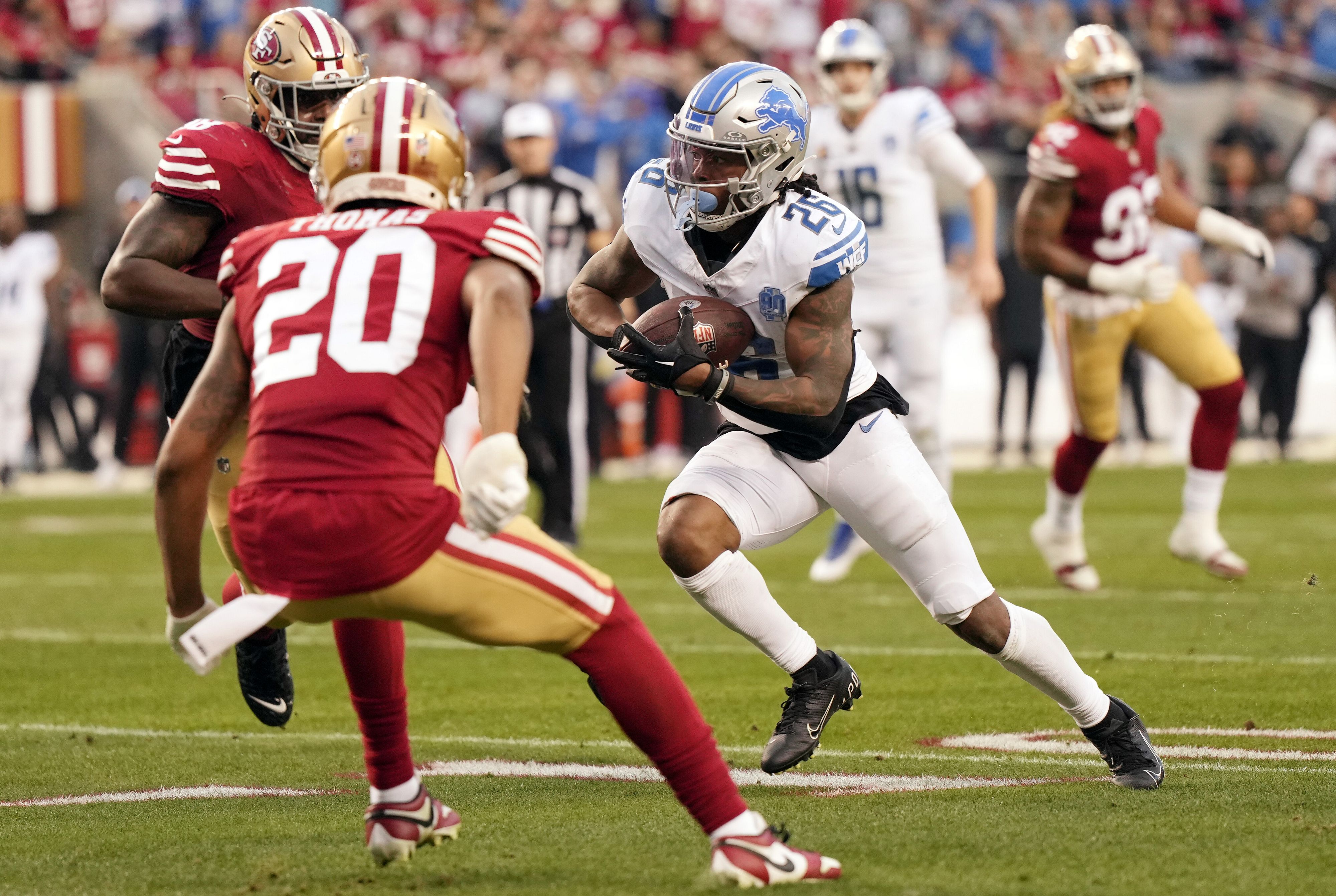 Gli errori da parte dei ricevitori dei Lions, Josh Reynolds in testa, ribaltano il match con i 49ers che fuggono via già alla fine del terzo quarto che concludono la frazione sul 24-27 prima di completare l'opera prima con un field goal e un touchdown di Elijah Mitchell, al primo pallone della sua partita.