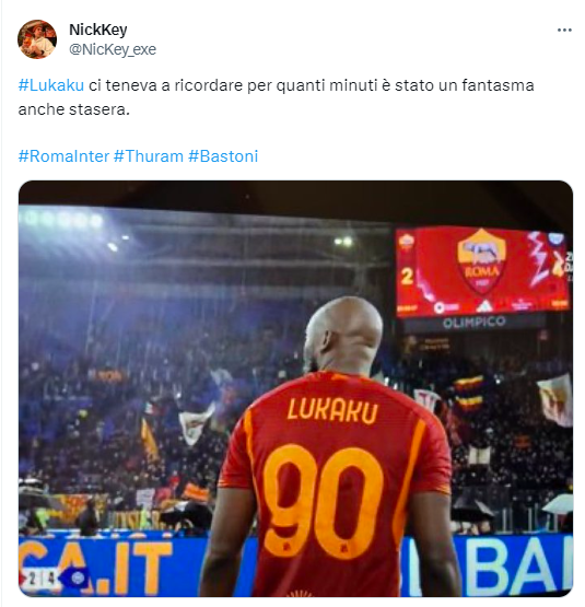 L'attaccante della Roma Romelu Lukaku è stato protagonista ancora una volta in negativo nella sfida contro l'Inter, sua ex squadra. E la prestazione flop del belga è finita nel mirino dei social: "Lukaku è ancora nerazzurro", hanno scritto in tanti, facendo riferimento al passaggio decisivo e involontario per l'ex compagno di squadra Acerbi in occasione del vantaggio nerazzurro e agli errori davanti a Sommer per il possibile 3-3 giallorosso. Mister De Rossi lo assolve: "Se avesse segnato saremmo tutti più contenti, ma si tratta di un’occasione che si è creato lui e in cui si è mosso bene. Se lui continuerà a crearsi 3-4 occasioni a partita segnerà tantissimi gol".