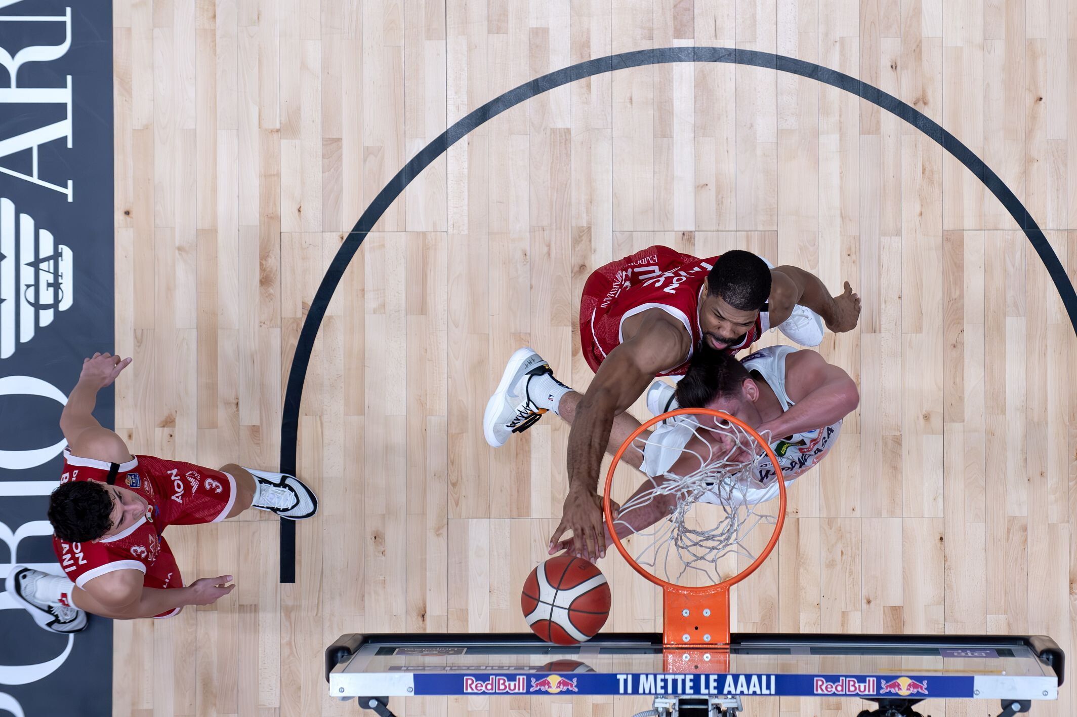 EA7 Emporio Armani Milano: Tonut 3 (1/3 da 3), Melli 9 (4/5 da 2, 1/4 tl), Napier 11 (1/2, 1/2, 6/6 tl), Shields 5 (1/4, 1/6), Voigtmann 10 (5/8 da 2), Bortolani 5 (1/3, 1/3), Ricci 3 (1/2 da 3), Flaccadori 2 (1/4 da 2), Hall 6 (3/3 da 2), Caruso 4 (2/3 da 2), Mirotic 9 (3/3, 1/4), Hines 2 (1/1 da 2). All.: Messina