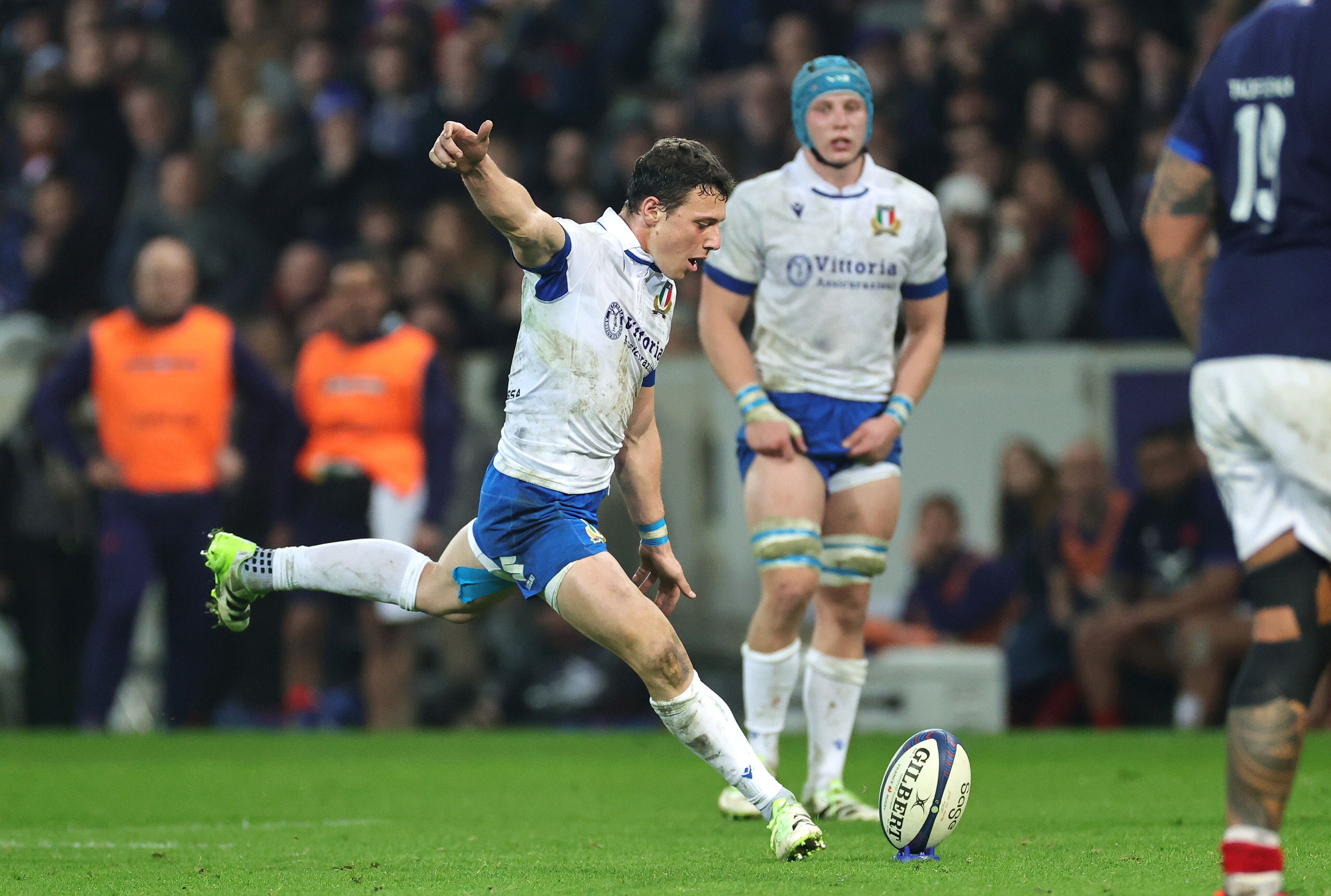 Gli uomini di Galthié si portano avanti dopo sette minuti di gioco con la meta di Ollivon (seguita dalla trasformazione di Ramos), arrivata dopo la valutazione del TMO. La grande aggressività dei padroni di casa e la loro maggiore fisicità mettono in seria difficoltà gli azzurri, che dopo aver subito un piazzato al 14’ riescono (complice anche l'imprecisione avversaria negli ultimi metri) a non concedere altri punti fino all'intervallo e sbloccarsi al 44’ con la punizione da 40 metri di Page-Relo. Nell’occasione arriva anche un cartellino rosso per Danty per placcaggio alto, ma sono ancora i transalpini a riportarsi sul +10 in avvio di ripresa con il piazzato di Ramos (ingenuità di Ruzza). La produzione italiana in fase offensiva continua inizialmente ad essere piuttosto deficitaria e si sblocca soltanto dopo i tre punti di Garbisi all'ora di gioco, a cui segue il pareggio firmato da Capuozzo al 70’, bravo a concretizzare sull'out di sinistra al termine di una bellissima azione (con successiva trasformazione).