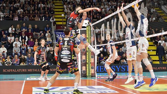 Resta terza in classifica la Gas Sales Bluenergy Piacenza (40), che ha nettamente la meglio sulla quarta forza del torneo, la Cucine Lube Civitanova (37): i marchigiani vengono travolti 3-0 in casa (25-21, 29-27, 25-22) in una gara equilibrata, che vede Romanò come top-scorer con 13 punti. Si forma invece un terzetto al quinto posto (36), perché la Rana Verona e l'Allianz Milano agganciano la Mint Vero Volley Monza, che ieri aveva sconfitto 3-1 Padova. Gli scaligeri travolgono Cisterna col punteggio di 3-0 (25-22, 25-19, 28-26) e i 21 punti di Keita, mentre i meneghini hanno la meglio sulla Gioiella Prisma Taranto: in Puglia finisce 3-1, con Reggers sugli scudi e autore di 23 punti contro una squadra che festeggiava la salvezza. Nell'ultima gara odierna la Valsa Group Modena, ottava in campionato con 23 punti, travolge il fanalino di coda: ventesima sconfitta stagionale per Catania, che ha vinto una sola volta e non riesce a capitalizzare i 20 punti di Basic. Dominano Rinaldi (21) e Juantorena, con Modena che vince 3-1: 20-25, 25-22, 25-15, 25-12 i parziali in un match senza storia.
