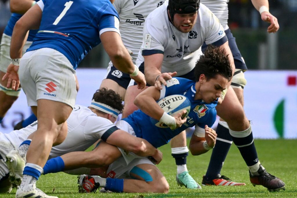 Gioia incredibile per l’Italrugby, che all’Olimpico di Roma si impone per 31-29 contro la Scozia nel quarto turno del Sei Nazioni 2024. Gli azzurri partono subito bene con i tre punti di Garbisi, ma al 7’ arriva subito la prima meta ospite di Fagerson, trasformata da Russell. Gli scozzesi giocano a un ritmo altissimo e con grande potenza, e al 12’ Steyn firma la seconda meta di giornata, con Russell che trasforma per il 14-3. I ragazzi di Quesada reagiscono al quarto d’ora, con Nacho Brex che riesce a sfruttare un errore avversario e fa registrare la prima meta azzurra del match, con Garbisi che ci aggiunge i due punti con il calcio. Il numero 10 scozzese infila altri tre punti con la punizione al 24’, con l’Italia che fatica tremendamente a contenere le azioni avversarie. Poco prima della mezzora Schoeman segna la terza meta per la Scozia, che nonostante la trasformazione fallita vale comunque il 22-10. Garbisi e Relo provano a tenere a galla i padroni di casa con le due punizioni del 22-16, risultato con cui le due squadre rientrano negli spogliatoi.