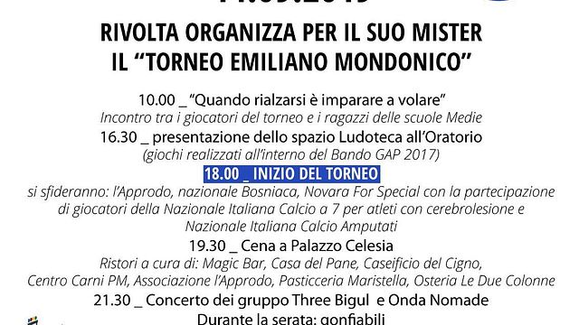 Il lavoro incessante della figlia Clara, l'impegno di una "Fondazione" che opera con costanza nel sociale, l'affetto di un intero paese (e non solo), la presenza di amici, conoscenti, estimatori: nasce da questo e per questo "La rivolta del Mondo", il torneo di calcio giunto alla sua seconda edizione dedicato al compianto Emiliano Mondonico, il Mister di Rivolta d'Adda scomparso il 29 marzo del 2018. Appuntamento dunque a sabato 14 settembre, ovviamente nel suo paese natale, per una giornata di calcio, solidarietà, ricordo e divertimento.
