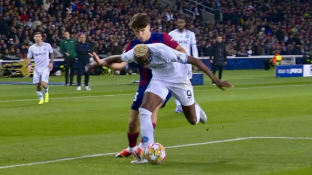 Proteste del Napoli al 5' della ripresa del ritorno degli ottavi di Champions League contro il Barcellona per un presunto fallo in area del difensore blaugrana Cubarsì su Osimhen, che viene toccato sul piede sinistro. L'arbitro Makkelie non vede irregolarità. "Sono stupito perché il Var non sia intervenuto - ha detto l'ex arbitro Graziano Cesari a Mediaset nel post partita - Cubarsì con il piede sinistro tocca il piede destro di Osimhen. Qui c'era rigore ed eravamo sul 2-1. Una grossa mancanza che il Var non sia intervenuto. L'arbitro doveva chiedere aiuto". "Direzione insufficiente - ha detto ancora Cesari sull'arbitraggio dell'olandese - Non si è adeguato al regolamento".