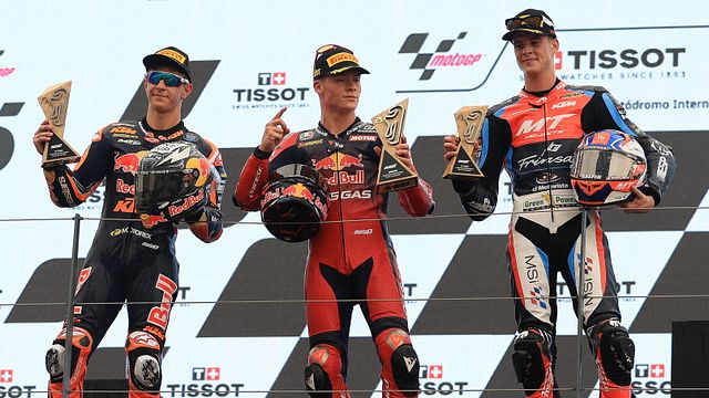 Battaglia a sei per la vittoria nella gara della Moto3 che apre il programma del GP del Portogallo. In un finale purtroppo privo di piloti italiani in lotta per il podio, dal mucchio selvaggio degli ultimi tre giri emerge vincitore Daniel Holgado. Lo spagnolo del team GASGAS Tech3 migliora il secondo posto di due settimane fa in Qatar e prende la testa della classifica generale. Holgado precede in volata José Antonio Rueda che era scattato dalla pole position con la KTM del team Ajo. Terzo gradino di un podio tutto spagnolo per Ivan Ortolà (KTM MSI) che ha la meglio su David Alonso. Vincitore all'inizio del mese a Losail, il colombiano del team ASPAR guida il gruppo a metà gara ma perde smalto (e il podio, e la testa della classifica generale) con un finale non all'altezza. A chiudere la top five di Portimao è l'australiano Joel Kelso (KTM BOE Motorsports).