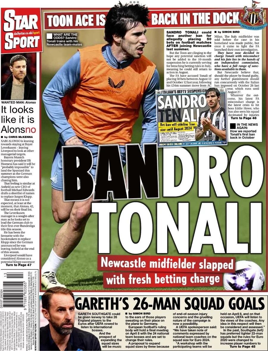 La notizia ha avuto naturalmente grande risalto sui quotidiani inglesi anche se, secondo il Sun e il Daily Mirror, i Magpies hanno buone speranze di riabbracciare Tonali nei tempi previsti. Durante la prima indagine, risalente all'autunno scorso e che poi ha portato alla sanzione di 18 mesi, il centrocampista infatti aveva fornito anche alla Football Association il materiale consegnato per l'indagine italiana e dunque il Newcastle si attende che un'eventuale ulteriore squalifica sia sovrapponibile a quella che l'ex Milan ha già ricevuto, che quindi la sconterebbe in parallelo rientrando in campo come da piani a settembre.