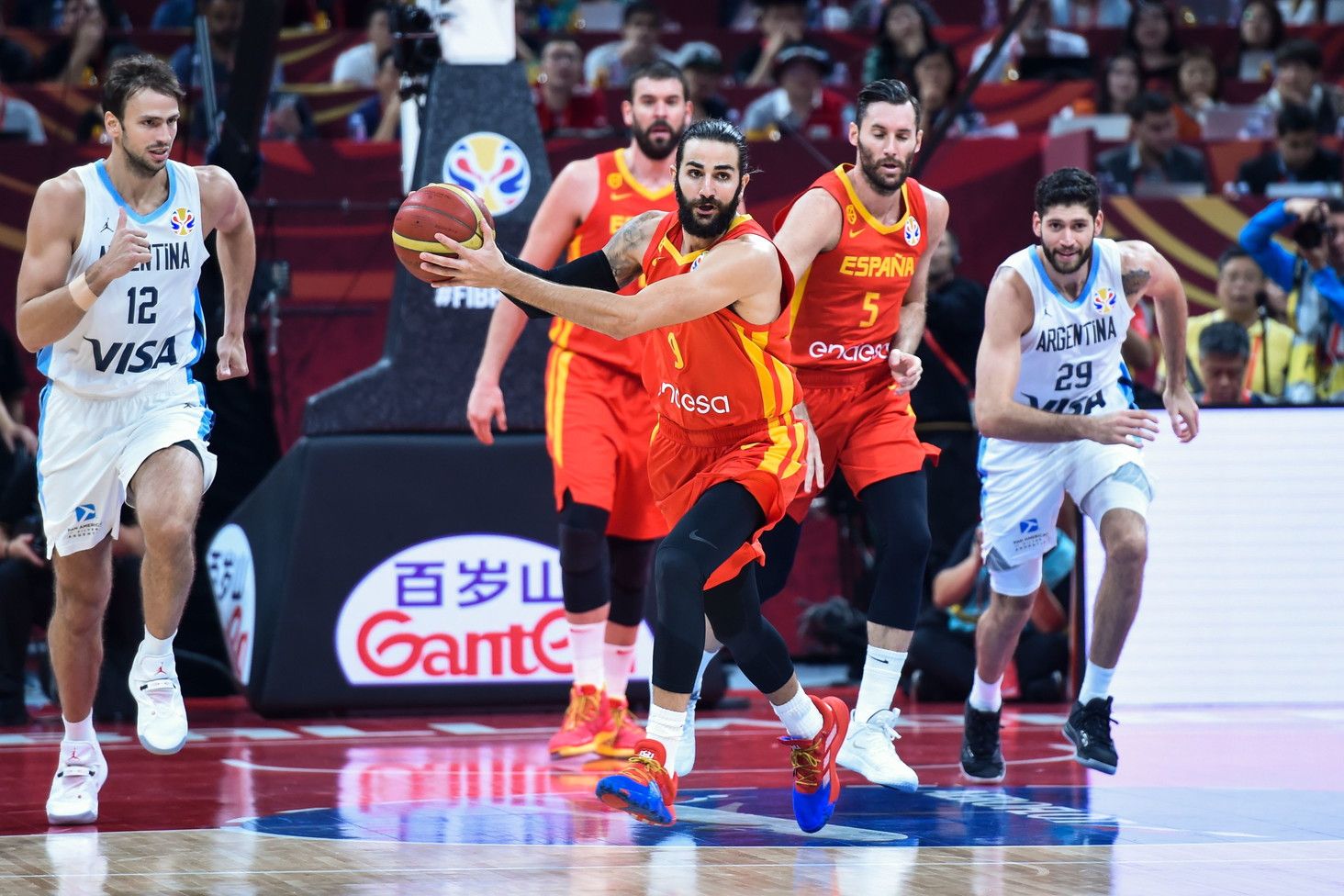 Nella Spagna impera Marc Gasol, il primo giocatore non statunitense a vincere l'anello Nba e il Mondiale nello stesso anno. Il centro dei Toronto Raptors mette a segno 14 punti, conditi da tre stoppate, sette rimbalzi e altrettanti assist. Nel pitturato fa la voce grossa anche Rudy Fernandez, autore di 10 rimbalzi, voce nella quale la Spagna domina particolarmente (47-27), sfruttando la netta superiorità fisica. La nazionale di Scariolo parte forte anche nel secondo tempo, con un gioco da tre di Ricky Rubio (20 punti) che vale il 55-33. La Spagna dopo il terzo quarto è avanti 66-47, l'Argentina negli ultimi dieci minuti riesce ad avvicinarsi solo a -12 con una schiacciata di Gabriel Deck (24 punti, il miglior realizzatore). E quando anche Sergio Hernandez capisce di non avere chance, richiama in panchina Scola e Campazzo, per tributar loro l'applauso del pubblico di Pechino, prima della festa spagnola che parte dopo il 95-75 finale.