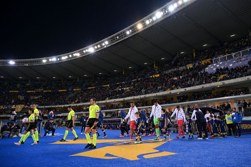 L'Udinese spreca nella ripresa e l'Hellas Verona la punisce al 92': è questo il film dello scontro-salvezza, che viene vinto dagli scaligeri grazie alla rete del difensore Diego Coppola. C'è grande timore di perdere al Bentegodi e si vede sin dai primissimi minuti, nei quali le squadre si studiano e le occasioni latitano: l'Hellas squilla con Coppola e Guida sventola la bellezza di tre gialli in pochi istanti. Il match si accende solo dopo venti minuti e sono gli scaligeri a spingere, prima con Folorunsho e poi con Cabal, senza trovare la porta. L'Udinese viaggia a folate improvvise e sfiora la rete al 28', quando Samardzic pesca Lucca e Montipò deve superarsi con un grande riflesso. Il serbo è molto ispirato e ci prova anche in primissima persona, ma la grande chance del primo tempo è per l'Hellas: Noslin svetta di testa e colpisce un palo al 44'. Nella ripresa aggredisce subito la formazione ospite, con Lucca a sprecare clamorosamente la chance del vantaggio. Sfiora la rete anche Bijol e il doppio cambio offensivo di Baroni non cambia l'inerzia della sfida, con l'Udinese che si vede annullare la rete di Pereyra: c'era un offside iniziale del Tucu, pescato sapientemente dal filtrante di Samardzic. Risponde l'Hellas con le ripartenze, sprecandone una con Noslin, ma negli ultimi minuti vincono l'accortezza e la tensione. Kamara è quello che ci prova con maggior intensità, stravincendo il duello con Centonze, ma non è l'Udinese a trionfare: al 92' Coppola anticipa Bijol, svettando sul corner battuto da Duda, e firma la vittoria dell'Hellas Verona. Gli scaligeri volano a 31 punti, agganciando l'Empoli e portandosi a +4 sul Frosinone terzultimo. Resta ferma a quota 28 l'Udinese, attesa giovedì dal recupero dei 18' mancanti contro la Roma.