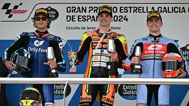 Vittoria dalla pole position per Fermin Aldeguer nella gara della Moto2 del Gran Premio di Spagna. Il pilota spagnolo già messo sotto contratto da Ducati per i prossimi anni ha controllato le operazioni fin dal via, precedendo al traguardo con la Boscoscuro "targata" Speed Up lo statunitense Joe Roberts con la Kalex di Onlyfans American Racing Team e l'altro spagnolo Manuel Gonzalez in sella alla Kalex Gresini. Grazie al secondo posto strappato a Gonzalez nel finale, il californiano Roberts riporta dopo diciotto anni gli USA in vetta ad una classifica generale del Motomondiale. L'ultima volta ad occupare la prima casella (nella MotoGP) era stato il compianto Nicky Hayden, nella stagione del suo titolo iridato nella premier class. Completano la top five di una gara dall'andamento molto lineare gli altri piloti local Sergio Garcia (ex leader della generale, Boscoscuro MT Helmets-MSI) e Albert Arenas con l'altra Kalex Gresini.