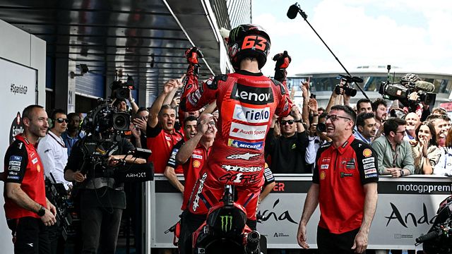 Soddisfatto anche Marco Bezzecchi, che ha chiuso 3° tornando su un podio che gli mancava dal GP d'Indonesia del 2023: "Sono molto felice, perché l'inizio di questa stagione e il finale della scorsa sono stati difficili, riuscire a reagire è molto bello - ha detto il pilota del team Ducati VR46 -. Sono grato al team, che non ha mai smesso di credere in me. Lo stesso vale per tutta l'Academy, Uccio, Vale e tutta la mia famiglia, devo ringraziare tutti loro".
