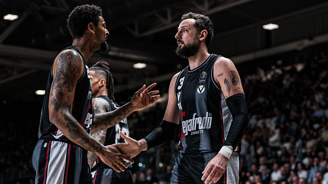 La Virtus Bologna non sbaglia un colpo e, in un match combattuto, ha nuovamente la meglio sulla Bertram Derthona: 83-77 e 2-0 nella serie, che potrebbe già chiudersi giovedì in Piemonte. Spingono sin dai primissimi istanti le V nere, forti del successo in gara-1 e vogliose di far esultare il loro pubblico: Mickey apre i giochi con una tripla, ma i tortonesi non demordono e pareggiano con Strautins. Regna l'equilibrio e Radosevic prova a spezzarlo con una tripla che vale il +2 per la Bertram, subito raggiunta da Belinelli (14-14) prima dell'allungo-Virtus: Pajola chiude il primo quarto sul 18-14. Nel secondo periodo Bologna scatta meglio e decolla con un parziale di 8-0, che vale il +12 sul 26-14. Servono cinque minuti per veder segnare la Bertram Derthona, che da qui in poi è una furia: Obasohan e Radosevic accorciano sul 32-30 a metà gara. La ripresa inizia all'insegna dell'equilibrio, che dura a suon di risposte e controrisposte fino al 43-43.