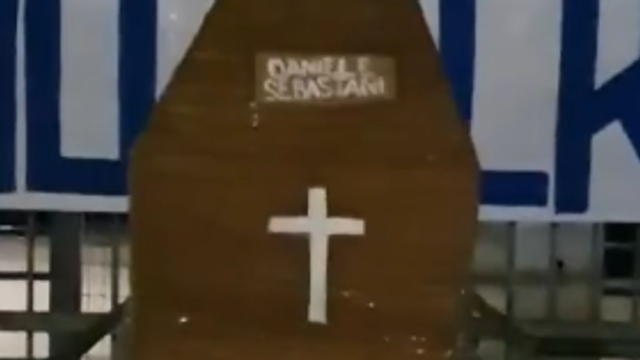 Si alza a livelli preoccupanti la tensione in casa Pescara. Dopo l'eliminazione dai play-off della formazione abruzzese a opera della Juventus Next Gen, sono arrivate nuove minacce di morte al numero uno dei biancazzurri, Daniele Sebastiani. Nella notte è comparso uno striscione all'ingresso della Curva Nord dello stadio Adriatico dai contenuti macabri e oltre i limiti: "Non avremo pace finché non vedremo scritto Sebastiani qui giace!". Il tutto accompagnato da una bara con sopra il nome del patron come si evince dal video postato dai colleghi di Forzapescara.com.