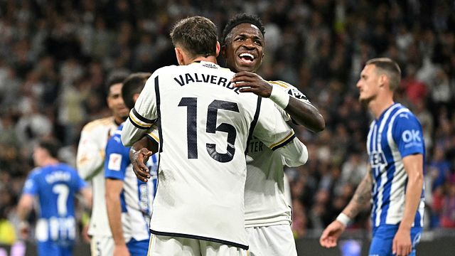 Non finisce la festa del Real Madrid, che travolge l’Alaves 5-0 al Bernabeu. I Blancos stappano la sfida dopo meno di seicento secondi: cross morbido con il contagiri di Toni Kroos per Bellingham, che con un tocco morbido beffa il portiere avversario sul secondo palo. La squadra di Ancelotti non si ferma, e al 27’ arriva il raddoppio: ottima azione personale di Camavinga, che arriva sul fondo e confeziona l’assist per il semplice tocco di Vinicius, che fa 2-0. In chiusura di primo tempo i Blancos mettono di fatto il sigillo sulla partita, con Valverde che al 46’ fa partire una sassata che si insacca sotto l’incrocio dei pali, per il tris dei padroni di casa all’intervallo. Gli ospiti non accennano la reazione, e poco dopo l’ora d gioco crollano di nuovo: al 70’ Bellingham pesca l’ottimo attacco della profondità di Vinicius, che con un potente diagonale cala il poker con la sua personale doppietta. Nel finale c’è spazio anche per Arda Guler: il talento turco firma il 5-0 finale da neoentrato, spingendo in rete con il sinistro dopo la conclusione ribattuta di Rodrygo. Con questo successo i neocampioni di Spagna salgono a 93 punti in classifica, mentre l’Alaves rimane bloccato a quota 42 in undicesima posizione.