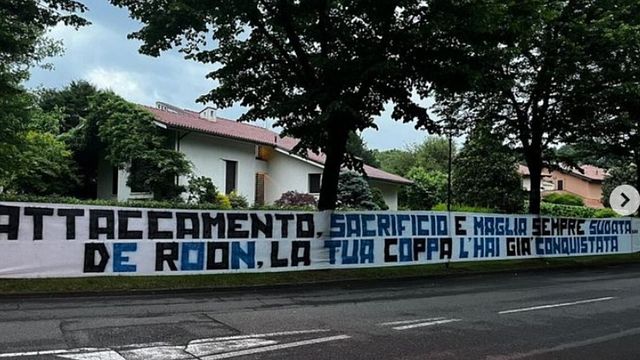 È stato un risveglio a dir poco inconsueto ed emozionante quello di Marten De Roon, che non potrà scendere in campo domani sera nella finale di Europa League per infortunio. I tifosi dell’Atalanta lo hanno omaggiato con uno striscione appeso fuori da casa sua. "Attaccamento, sacrificio, la maglia sempre sudata. De Roon, la tua coppa l'hai già conquistata", la scritta a caratteri neri e azzurri. Pronta la replica, usando anche espressioni in dialetto bergamasco, del giocatore olandese, comunque convocato Gian Piero Gasperini per la trasferta di Dublino. "Ragazzi, stamattina mi avete fatto emozionare. Sapevo che eravate tifosi speciali, ma questa è una sorpresa enorme - si legge sul profilo Instagram di De Roon -. Proprio davanti a casa mia, 'ol dé prima dèla finàl' (il giorno prima della finale, ndr). Grazie davvero "pèl dè póia ('pelle di gallina', per l'emozione, ndr)".