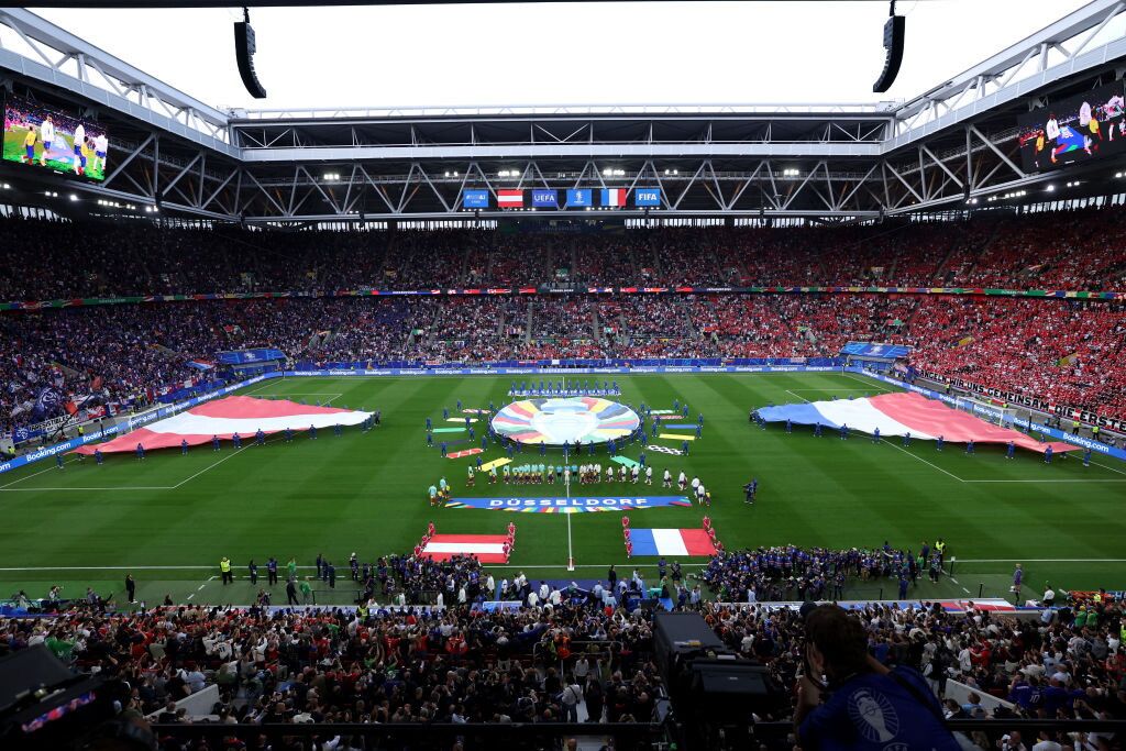 Senza Arnautovic dal 1', Rangnick sceglie Gregoritsch dall'inizio col trio di trequartisti formato da Laimer, Baumgartner e Grillitsch. La Francia, con un 4-2-1-3, si affida a Rabiot con Kanté a centrocampo e Griezmann libero di spaziare, mentre davanti è Mbappé a prendersi il ruolo da punta con Dembélé e l'interista Thuram larghi. Proprio Mbappé all'8' si rende protagonista della prima occasione del match, con una incursione dalla sinistra che buca la difesa austriaca e col solo Pentz capace di dire no al francese deviando in angolo. Corsia di sinistra che diventa terreno da caccia per i Bleus che costruiscono tanto del loro gioco dal lato di Theo Hernandez, con Posch e Danso che non riescono a opporsi alle scorribande. Così come non ci riesce Wober su Dembélé sulla corsia opposta, con l'austriaco costretto al fallo che gli costa un giallo che è una spada di Damocle dal 16'. Nonostante l'aggressione alta dei francesi, gli uomini di Rangnick dopo un primo periodo di studio si prendono di coraggio tentando una sortita offensiva, ma tra un Kanté attentissimo e una difesa composta e robusta per Maignan non c'è pericolo. Brivido che però arriva al 35', quando su sponda di Sabitzer è Baumgartner a trovarsi a tu per tu con l'estremo difensore francese, col centrocampista del Lipsia che però si fa rimpallare dal milanista dopo la dormita difensiva. Uno spavento non di poco conto che rianima la Francia che al 38' trova il vantaggio con un pizzico di fortuna: Mbappé sulla destra punta Mwene, mette al centro dove c'è Griezmann, ma ad anticipare Pentz è Wober, che preso in controtempo dal movimento di Danso devia di testa verso la propria porta per l'autogol che vale lo 0-1 francese. Francia che di fatto ringrazia e si entusiasma, con Mbappé che nel finale di frazione non trova per poco il raddoppio, ma col neo Blancos che grazia Pentz.
