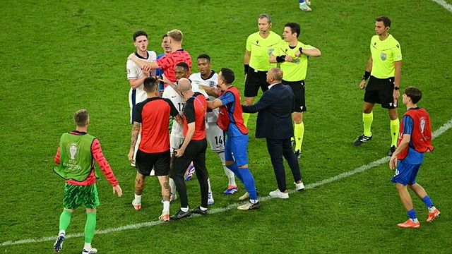 Finale molto teso quello di Inghilterra-Slovacchia, partita decisa dalla prodezza di Bellingham che in pieno recupero ha pareggiato i conti portando il match ai supplementari e poi dal 2-1 siglato da Kane subito all'inizio dell'extra-time. Al fischio finale del match della Veltins-Arena di Gelsenkirchen, il ct della Slovacchia Francesco Calzona, ex allenatore del Napoli, è andato verso il direttore di gara, l’arbitrio turco Meler, per chiedere spiegazioni su alcuni episodi del match. Da qui la reazione di Declan Rice, che gli avrebbe intimato di stare zitto ("shut up") accompagnando l'invito con alcuni insulti, tra qui - riferisce la Gazzetta dello Sport - anche un "pelato di m...". Tensione poi però fortunatamente rientrata prima che la situazione potesse degenerare.