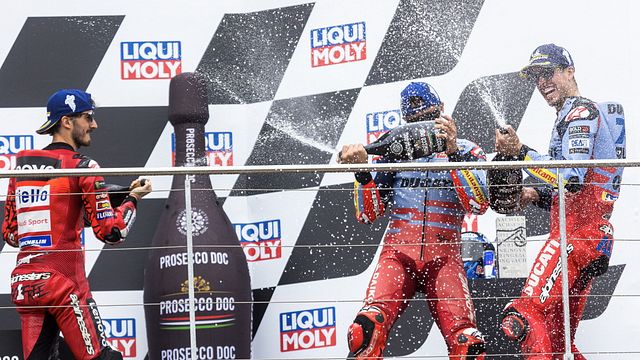 Marc Marquez sorride dopo il 2° posto nel GP di Germania che gli è valso un podio al fianco di suo fratello Alex, 3°: "Sono molto contento, è il primo podio con mio fratello - le parole del pilota Ducati Gresini a Sky -. È molto bello per noi e per il team Gresini. Sono partito dietro ma pian piano sono arrivato, avevo il dubbio se prendere il rischio di attaccare Alex o meno, ma alla fine l'ho fatto. Il mio obiettivo nella seconda metà di stagione è fare weekend più stabili, stando nelle prime file anche in qualifica per poter stare a contatto con i migliori. Per ora ci sono Pecco e Jorge più forti, noi dobbiamo lavorare per lottare con loro. Il dolore? Oggi mi sono svegliato molto meglio e sentivo che potevo dare battaglia".