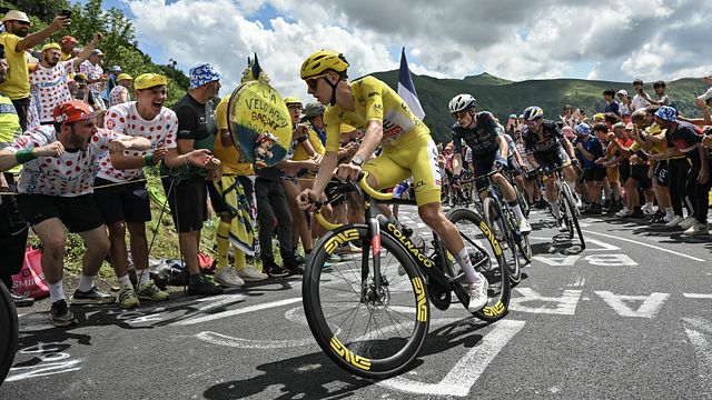 Il gruppo però non ha lasciato troppo spazio con un vantaggio massimo attorno ai due minuti prima di recuperare velocemente in vista del Col de Neronne con Wout Van Aert (Team Visma | Lease a Bike) che è scivolato imboccando una curva mentre si trovava alla guida del plotone. Sulla breve, ma ripida ascesa hanno quindi attaccato Lazkano e Healy tentando di resistere all'inseguimento del gruppo trascinato dall'UAE Team Emirates. Sul Puy Mary Pas de Peyrol si è però concluso qualsiasi tentativo con Juan Ayuso e Adam Yates che hanno preparato l'allungo di Tadej Pogacar mettendo in crisi Remco Evenepoel (Soudal-QuickStep).