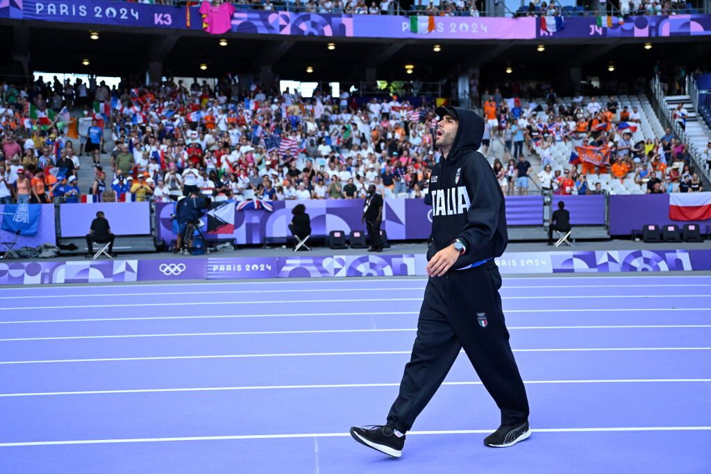 Gianmarco Tamberi ha appena fatto il suo ingresso sulla pista dello Stade de France, insieme agli altri finalisti del salto in alto, per il riscaldamento verso la gara al via dalle 19. L'azzurro, la tuta blu dell'Italia e il cappuccio in testa, è andato sotto la curva dove sono molti tifosi italiani, ha salutato, si è inchinato alle ovazioni, e poi ha cominciato a correre e saltellare per scaldarsi.