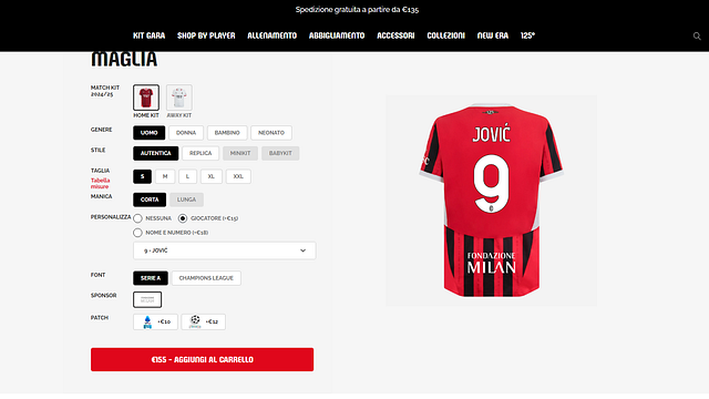 Gli indizi di mercato ormai si trovano ovunque: sui social spesso basta un like o una storia per alimentare le voci. In questo caso, però, un possibile indizio di mercato arriva dal sito ufficiale del Milan. Andando nella sezione dello store online in cui è possibile acquistare la nuova maglia della stagione 2024/2025, se si decide di personalizzarla e scegliere un giocatore, ecco che al nome di Luka Jovic viene associato il numero 9. Che sia dunque il serbo l'erede della maglia indossata da Giroud? Al momento sembra di sì. Il futuro di Jovic però è piuttosto incerto: per Fonseca può essere ceduto ma il serbo ha fin qui rifiutato diverse destinazioni (Arabia, Grecia, Turchia) e vorrebbe restare a Milanello. Dalla sua permanenza o meno dipenderebbe anche l'arrivo di Abraham dalla Roma ma intanto a confermarlo ci ha pensato... lo store ufficiale del Milan.