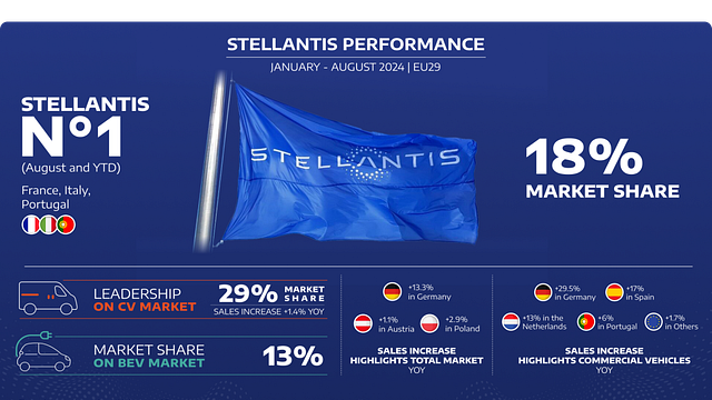 Stellantis è entrata nella seconda metà dell'anno con una quota del 18% sui mercati EU29 dall’inizio dell’anno ad agosto, consolidando il suo secondo posto nella classifica europea. I marchi Citroën, Dodge e Jeep hanno ottenuto risultati particolarmente positivi, incrementando le vendite rispetto allo scorso anno. Il Gruppo è al vertice in Francia, Italia e Portogallo nel mese di agosto e dall'inizio dell'anno (YTD)
