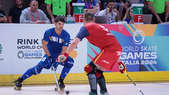 I ragazzi di Bertolucci giocano un hockey fluido, in puro contrasto con la pressione altissima portata dalla Spagna. Così Grau deve intervenire su rovescio velenoso di Malagoli e su un alza e schiaccia di Cocco che fa urlare al gol i 3.500 spettatori del PalaIgor. Al 14’ Compagno viene toccato in area e capitan Cocco prima si fa parare il rigore, poi insacca un alza e schiaccia di pregevole fattura. Il 2-2 del capitano azzurro inaugura una serie di tre reti in 43 secondi firmate da Carballeira e Compagno. Il pareggio potrebbe essere il risultato più giusto, ma a condannare gli Azzurri ad un quarto di finale difficile contro l’Angola e Nil Roca, che a 3’28” dalla fine firma il 4-3 per la Spagna.