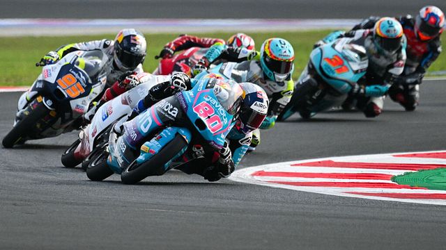 Ottava vittoria stagionale su 14 gare e leadership in Moto3 sempre più salda per David Alonso che in sella alla sua CFMoto non lascia scampo a nessuno. Da buon opportunista, il colombiano attende il momento giusto per andare in testa alla gara di Misano, con gli ultimi giri emozionanti che regalano il successo al 18enne. E ora tra lui e il titolo c'è davvero poco, con la festa iridata che potrebbe già arrivare tra due appuntamenti.