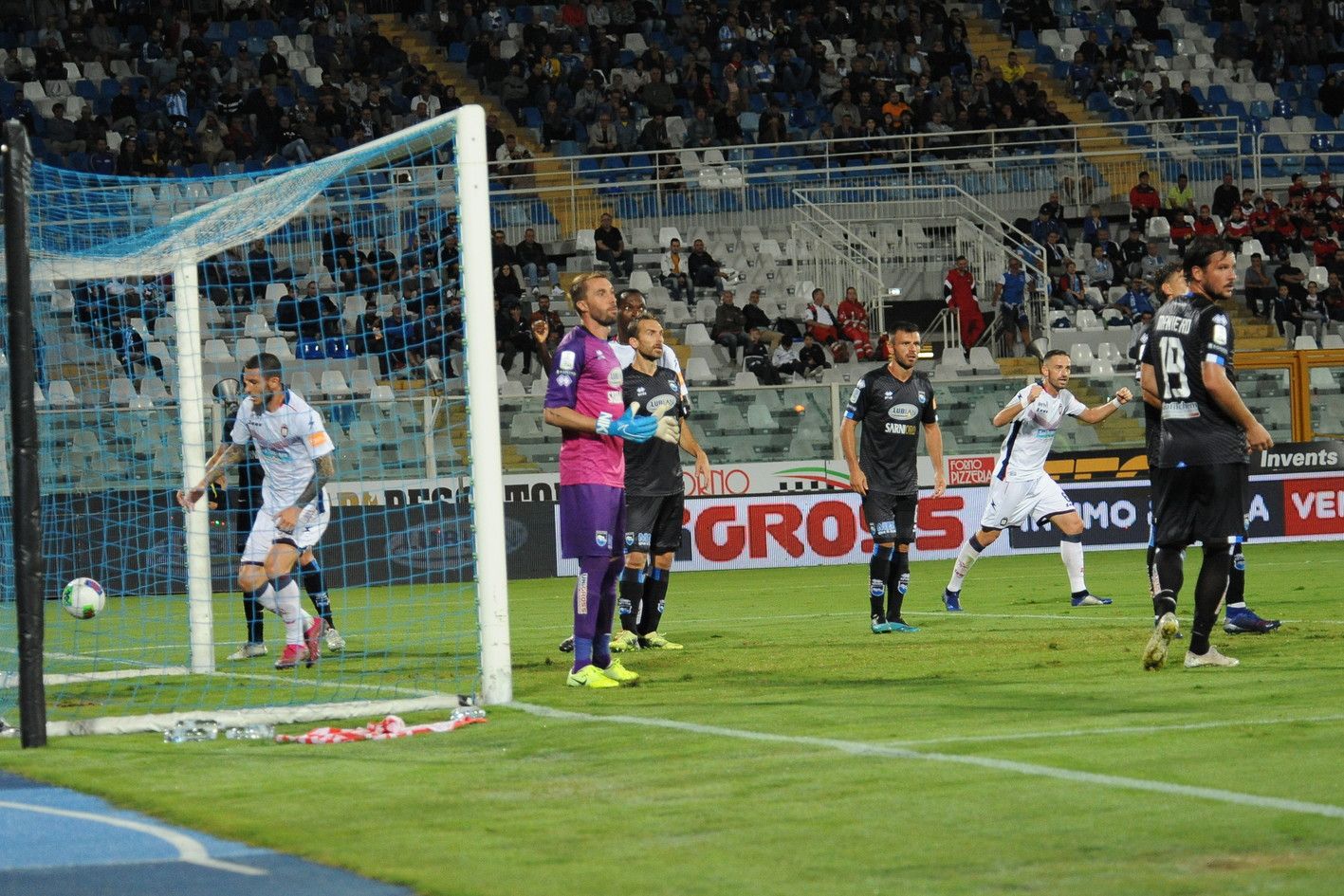 Il Crotone parte subito fortissimo sin dai primi minuti, con Benali che mette Mazzotta in condizione di far male ai padroni di casa. Ma è Messias a sfiorare il gol, con un colpo di testa su cui Fiorillo non si fa sorprendere. Quindi lo stesso portiere degli abruzzesi per poco non cucina la frittata (bravo Bettella a chiudere su Simy), poi è Zappa a chiudere sul più bello su Mazzotta: tutto in dieci minuti. Il gol del Crotone è nell'aria, e infatti arriva al 17': Simy pesca in area Benali e il nazionale libico lascia di sasso mezza difesa del Pescara per poi andare a segno con un gran destro. La reazione dei biancazzurri non arriva, anzi sono sempre gli ospiti ad attaccare: ci prova Crociata da fuori area, poi Simy interviene su una punizione di Messias ma non trova la porta. Dopo una paratona di Fiorillo sul solito Benali finalmente il Pescara si scuote: Kastanos con un gran sinistro chiama Cordaz alla parata, quindi Machin va al tiro da fuori area ma colpisce una clamorosa traversa.