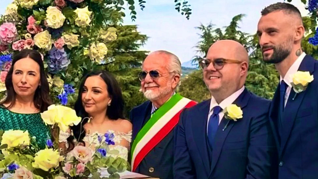 Aurelio De Laurentiis e Marcelo Brozovic insieme a un matrimonio. È successo quest'oggi in provincia di Lecco, dove il patron del Napoli ha celebrato delle nozze a Villa Lattuada. In una foto della cerimonia apparsa sui social, si vede anche l'interista, testimone della coppia. Brozovic gioca attualmente all'Al Nassr in Arabia Saudita.