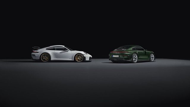 I nuovi modelli 911 GT3 sfoggiano una linea affilata nella parte anteriore e posteriore e soluzioni aerodinamiche specifiche. In entrambe le varianti, il diffusore anteriore riconfigurato, la sagoma ricercata del profilo dello spoiler e le alette modificate nel sottoscocca aumentano la deportanza e ottimizzano di conseguenza il flusso d'aria. I proiettori a LED con tecnologia Matrix rivisitati, disponibili sulla 911 GT3 con anello decorativo bianco opzionale, integrano tutte le funzioni di illuminazione della 911 eliminando la necessità di luci extra inserite nella fascia sotto il paraurti anteriore. Ciò consente di ampliare l'area di ingresso dell'aria e di creare un look decisamente ben strutturato. Nella sezione posteriore, il diffusore, le prese d'aria e il cofano posteriore sono stati ridisegnati. L'alettone di coda della 911 GT3 è provvisto di nuove piastre laterali angolate.