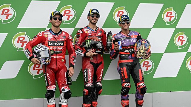 Francesco Bagnaia conquista con il tempo di un minuto, 28 secondi e 700 millesimi la pole position in vista del Gran Premio di Thailandia (terzultimo appuntamento del Mondiale) e della ancor più imminente Sprint di Buriram. A completare la prima fila sono il suo vicino di box Enea Bastianini (staccato di 232 millesimi al capolinea delle qualifiche) e il leader della classifica generale (con venti punti di vantaggio sullo stesso Bagnaia) Jorge Martin. Finito a terra al suo ultimo time attack... alla pole dell'italiano, il pilota della Ducati Prima Pramac conserva la casella più esterna della prima fila con un ritardo finale di 430 millesimi dalla vetta. Al via dalla seconda fila in quest'ordine Marco Bezzecchi (Ducati VR46), Marc Marquez (Ducati Gresini, vittima di una caduta) e un ritrovato Fabio Quartararo, promosso con Di Giannantonio dal Q1 e alla fine autore del sesto tempo, nonché primo pilota non-Ducati della griglia di partenza. Bezzecchi accusa un ritardo di 624 millesmi da Bagnaia, che diventano 686 per l'otto volte iridato e 708 per il Diablo, campione del mondo 2021 della premier class. Pedro Acosta apre la terza fila con la GasGas KTM Tech ì3 (+0.719), seguito da altre due Ducati Clienti: quella di Fabio Di Giannantonio (VR46, al suo ultimo GP stagionale) e quella Gresini di Alex Marquez. Quarta fila per gli ultimi tre piloti arrivati alla caccia alla pole del Q2: Maverick Vinales (Aprilia Racing), Franco Morbidelli (Ducati Prima Pramac, caduta alla curva 5 pochi istanti dopo il compagno di squadra Martin) e Johann Zarco che - evento rarissimo quest'anno - "issa" la Honda (quella LCR) nella parte nobile della classifica dei tempi.