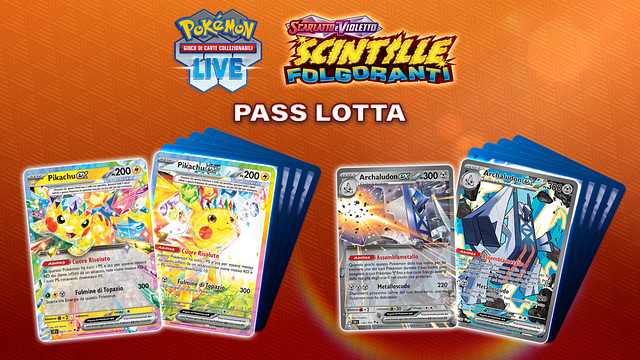 Le carte dell’espansione Scarlatto e Violetto - Scintille Folgoranti sono ora disponibili in buste di espansione, set Allenatore Fuoriclasse e collezioni speciali presso tutti i rivenditori autorizzati. Si può inoltre giocare con Scarlatto e Violetto - Scintille Folgoranti in versione digitale sull’app GCC Pokémon Live per dispositivi iOS, Android, macOS e Windows. Gli Allenatori potranno collezionare e lottare con nuove carte che hanno per protagonisti i Pokémon-ex Teracristal Astrali e ricevere bonus di gioco quando effettueranno l’accesso all’app. In più, a partire da questo mese, i fan del GCC Pokémon avranno anche l’opportunità di ottenere delle carte promozionali speciali realizzate in collaborazione con la serie Orizzonti Pokémon, e raffiguranti i due protagonisti, Liko e Roy, insieme al rispettivo compagno d’avventura.