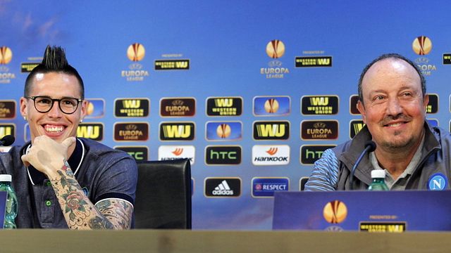 L'aula magna in rigoroso silenzio, ad ascoltare le sue spiegazioni e i suoi punti di vista, mentre la macchia rossa composta dalle divise degli allievi si sparge lungo le sedute. Tra i banchi annuisce anche un corsista che ha seguito da vicino le sue indicazioni quando era un 'suo' calciatore: Marek Hamsik.