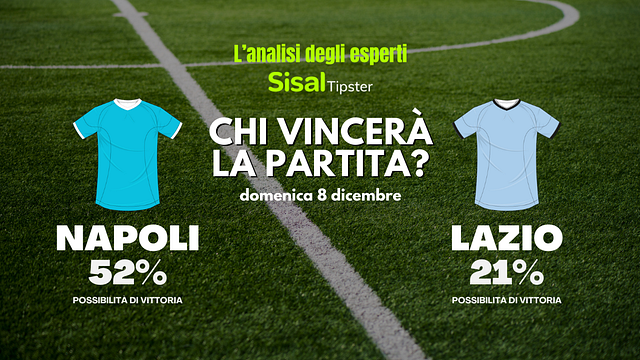 È Napoli-Lazio il secondo big match della 15° giornata di Serie A, sfida in programma domenica 8 dicembre alle 20:45. A distanza di pochi giorni dal match di Coppa Italia, giocata a campi invertiti, le due squadre si affrontano anche in campionato con un unico obiettivo in testa: la vetta della classifica. Il Napoli deve vincere per rimanere davanti a tutti, mentre la Lazio cerca una vittoria che la porterebbe a un solo punto dalla squadra partenopea. Ma come finirà la sfida del Maradona? Gli esperti SisalTipster hanno pochi dubbi.